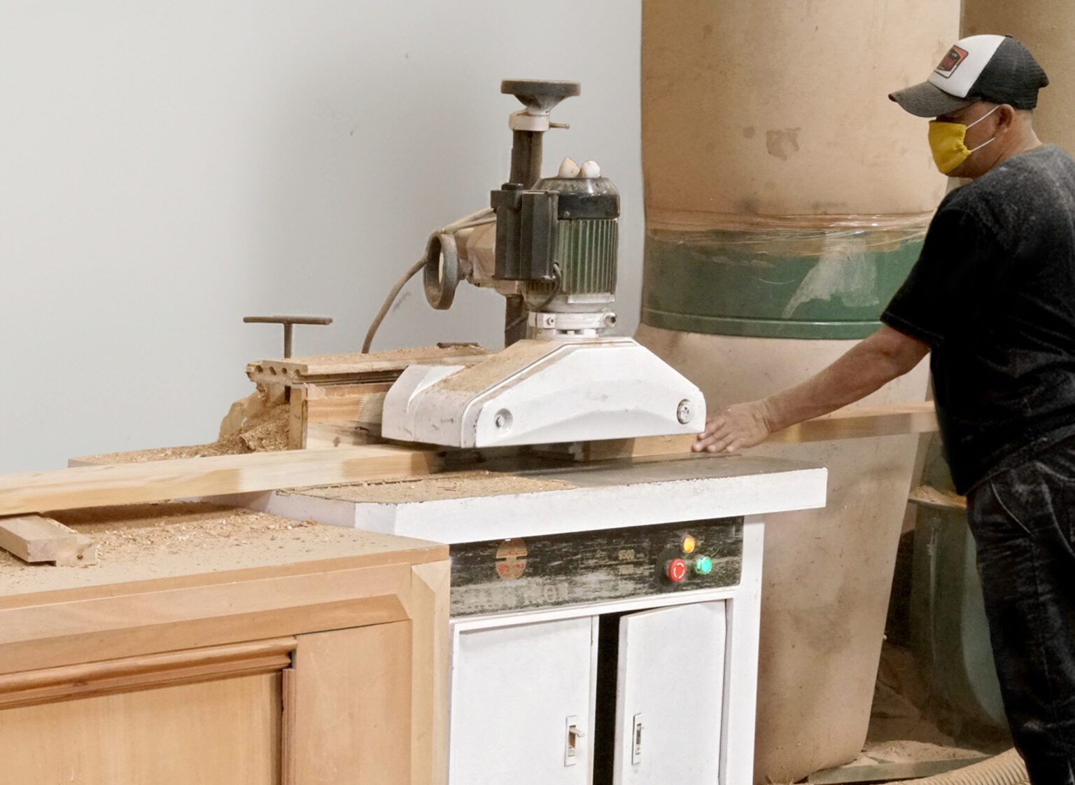 Guided by an artisan's hand, these machines meticulously shape the architectural profiles that give each door its unique character.